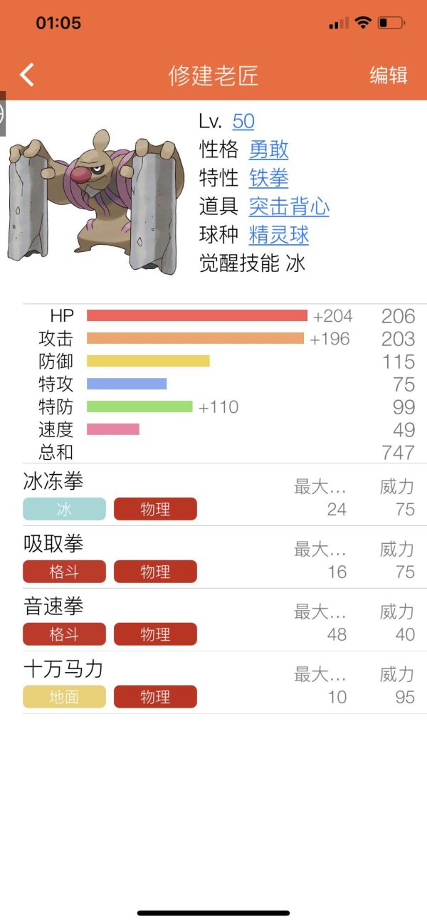 铝钢龙比较惧怕沙暴兄弟,同时队伍又没有反空间的手段,美蛇能限制卡比强化但是无法撼动卡比,因此加入了能满足以上三个条件的民工,手撕沙暴,脚踩卡比,配合美纳斯还能挑重爆,搞煤炭。吸收拳标准输出+续航,音速拳配合铁拳收残力度奇高,十万马力是极巨化时加特防用的,也能重创煤炭龟;最后一个配合铁拳选了冰冻拳,可以打打飞机多龙。选铁拳不选毅力是因为本身风妖精携带了神秘守护,拳系技能也比较多就贪一下1.2的加成。但是面对夜巨+卡比/班吉拉交换场地就比较尴尬了…之前被5连交换场地…心态爆炸…