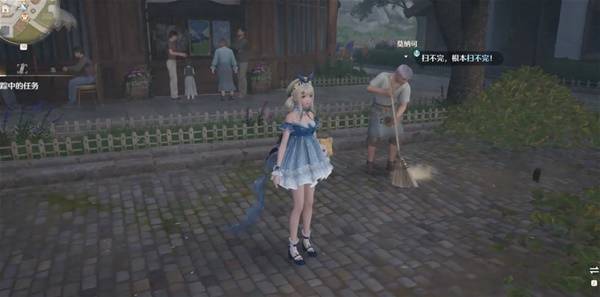 与扫地的NPC对话后,向周围的三堆落叶堆使用「净化」技能,即可完成
