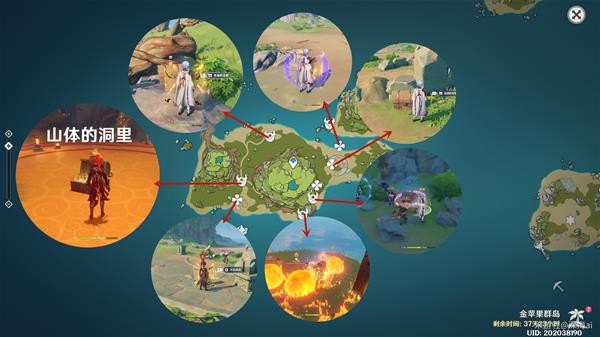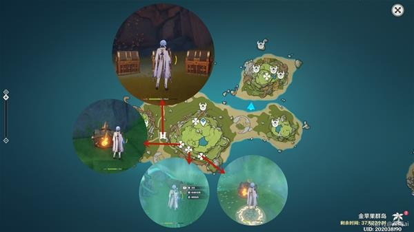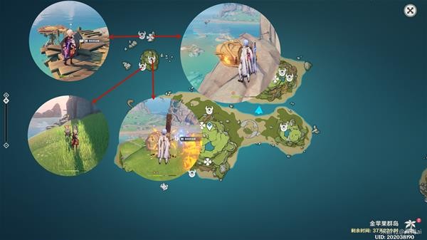 此处的三个珍贵宝箱需要按照下图的顺序来,海螺就在这个地洞中