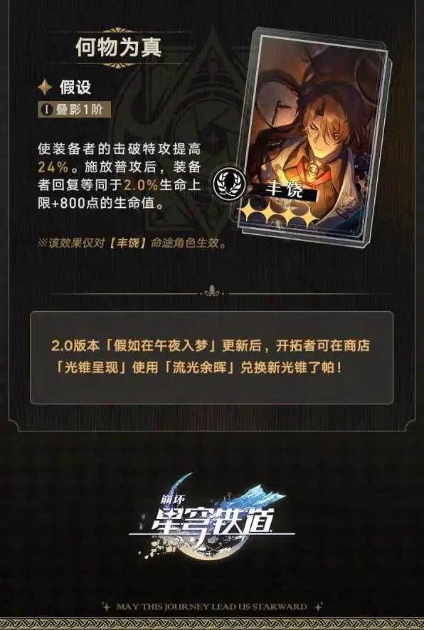 2.0版本「假如在午夜入梦」更新后,开拓者可在商店「光锥呈现」使用「流光余晖」兑换新光锥了帕!