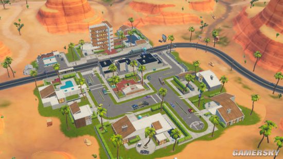 我们从加油站出来后,势必会穿过棕榈天堂这个地方,这个地方的前期竞争非常强,这样城区内很有可能有一些在前期竞争中胜出或者是正在决斗的玩家。那么第一种情况,若玩家装备比较高级,而玩家还想要前期稳健一点,从附近沙丘慢慢离开就好,带着我们的装备进入下一个圈进行战斗。