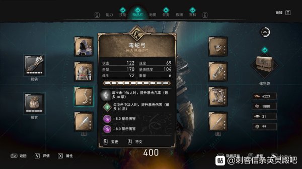 套装自然是导师套输出最高,弓选择毒蛇弓加爆率。