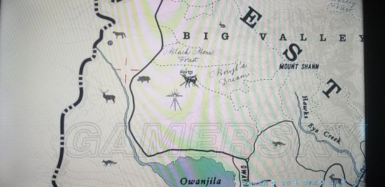 美洲狮就在下图红标位置,就是传奇公鹿旁边。基本早上5,6点钟就在这附近。