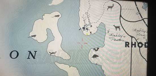 图中,营地下方就有浣熊,左边小岛有绿蜥蜴。都是用狐鼠猎枪,打头。
