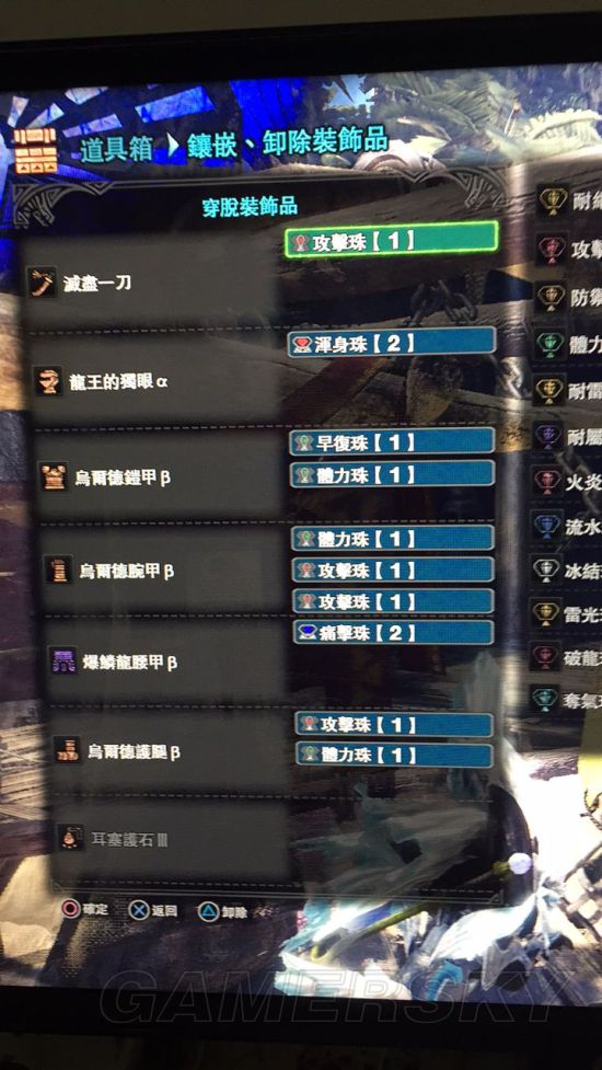 珠子方面也不算怨念,一颗恢复速度珠也可以换耐瘴1达到耐瘴3打尸套,如果觉得还不稳可以把攻击换耐昏厥3,个人感觉不需要,有猫猫吹笛子各种buff很少会晕。