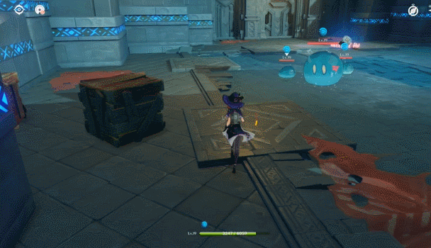 每个小队一次只能带四个人,有的时候我们没办法切换水属性的角色与冰属性配合,这个时候我们要是再想冰冻敌人就需要一些技巧了,尤其是要学会利用场地中任何有水的地方。比如说利用一些有水的沟渠,把敌人卡在水沟中附加“潮湿”状态,随后再使用冰技能进行“冻结”。