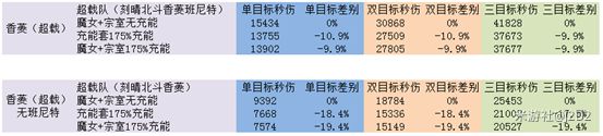 图上可以看出伤害最高的配装为魔女套,如果为了香菱技能能够循环起来,需要以降低20%左右的伤害为代价刷取堆叠充能的魔女套或者充能套,两者基本没有差距。