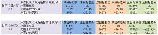 当甘雨在携带行秋的能全程冰冻的冰冻队时(全程冰冻是因为另外个冰角色的原因,不要误解成甘雨站场),由于冰套超强的暴击率收益,充能套被完爆。如果想甘雨拥有较好的循环,可以为甘雨刷取带充能的冰套,而不是充能套。