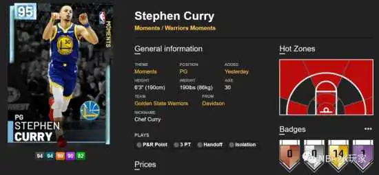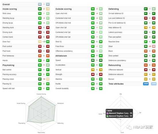 这张库里相比于之前的钻库来看,变动不大,中投稍稍拔高4点,三分提升1点,造犯规低了20点,抢断高了40点,其余基本没有变化。