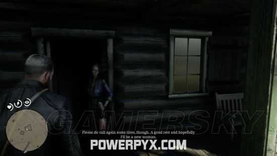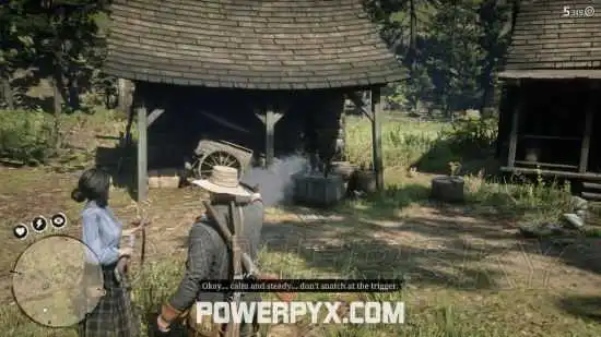 亚瑟会在这里教这位名叫夏洛蒂的孀妇如何猎杀兔子并剥皮,于是在这里我们需要示范如何狩猎兔子。