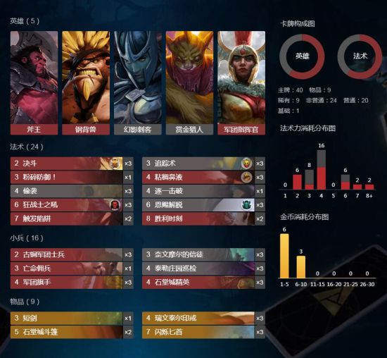 卡组思路:红色系斧王,刚被,军团作为top0级别的英雄拿出来肯定没问题,基本上是路霸,首发pa,赏金,在拿到追踪术后打钱超快,因为基本上对上英雄大概率是能干掉,物品跳到拉满,在金钱充足的情况下,用跳刀来倪补红色英雄笨重的弱点,偷袭和恩赐解脱能灵活的击杀对面有威胁的英雄,在前中期就能将对手击溃,后期配合胜利时刻,信徒也能轻松打80,实乃前中后都强势的卡组