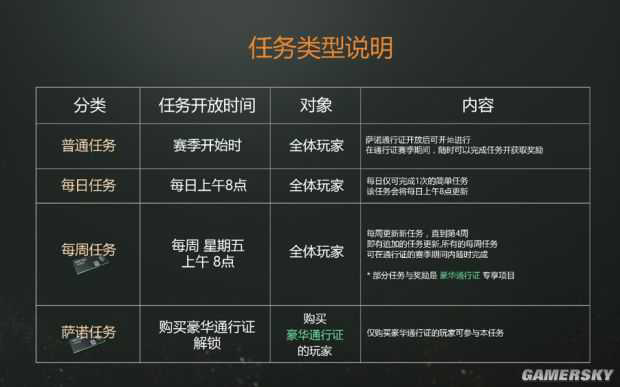 萨诺任务是豪华通行证玩家的专属任务,必须在萨诺地图完成。任务都是连锁的,必须完成第一个才能依次解锁并完成第二个第三个。一个系列的连锁任务完成可以获得额外奖励。
