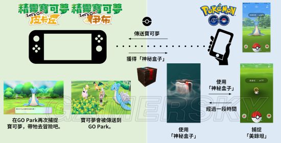 在初次把宝可梦从《Pokémon GO》传送到《精灵宝可梦 Let's Go!皮卡丘/Let's Go!伊布》中的时候,玩家就能获得特别的道具「神秘盒子」。
