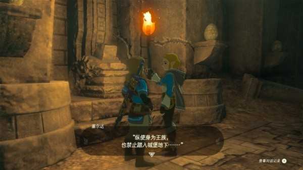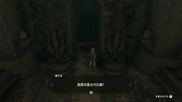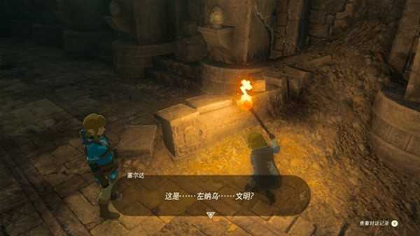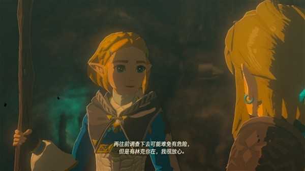 在深处会看到怪物,挥剑击杀触发剧情,这里有块石壁,记录着当年封印战争的全貌,我们听着塞尔达叙说石壁上的事迹,之后再继续往下面走。