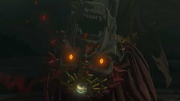 在下面终于见到了宣传片那个骷髅头了,之后触发剧情,骷髅头利用瘴气要袭击塞尔达,被林克挡住了,还把满血的林克吸收掉成3颗血了,时候发生的一切就按照剧情那样,城堡飞天,林克救不到塞尔达,期间他的右手臂还被腐蚀了,拥有了新的能力。