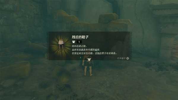 打开宝箱,捡到了残旧的鞋子,走出外面,跳下去吧。