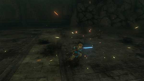 林克身上的大师之剑在发光,看来背后肯定有什么原因,自从封印了袭击海拉鲁的灾厄之后,城堡就一直被搁置着,我们就继续前进吧。