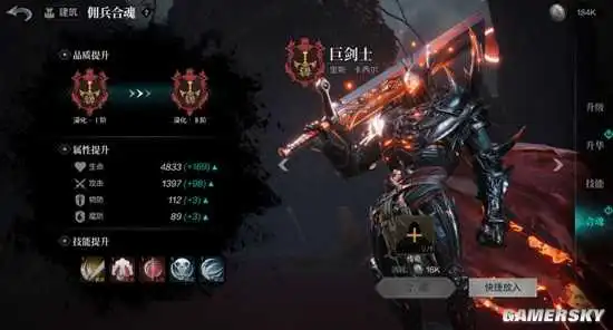 以重骑士为例。重骑士升至浸化1阶,需要消耗3个传奇品质的使用大剑的佣兵,以及2个重骑兵。
