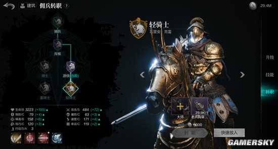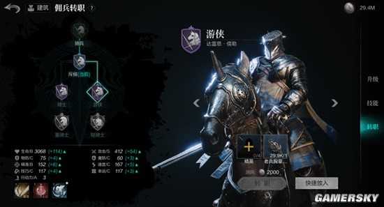 游侠可以消耗3个游侠和1个老兵胸章·三,转职成轻骑士,依然保持均衡的属性提升。