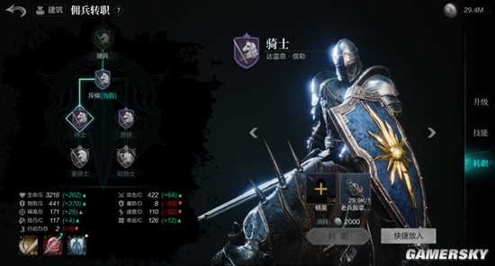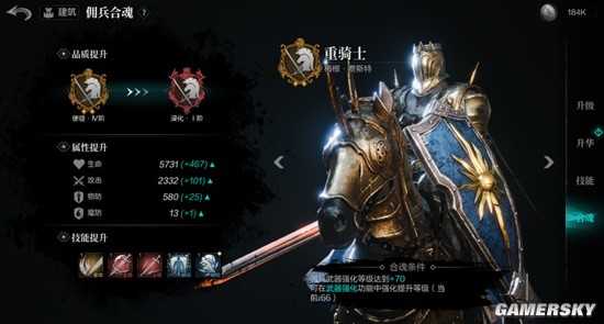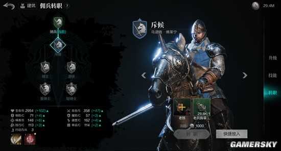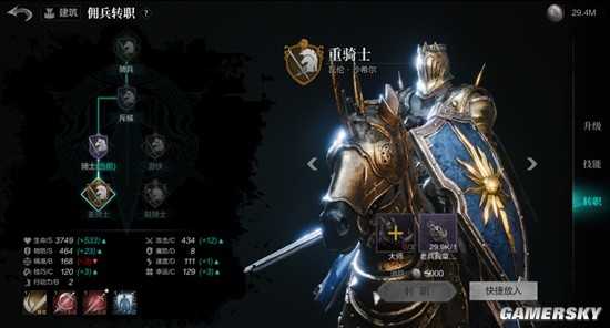骑士可以消耗3个骑士和1个老兵胸章·三,转职成重骑士,大幅提升生命值。