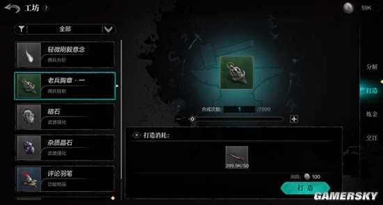 老兵胸章:工坊打造。打造消耗的材料可以通过采集获得。