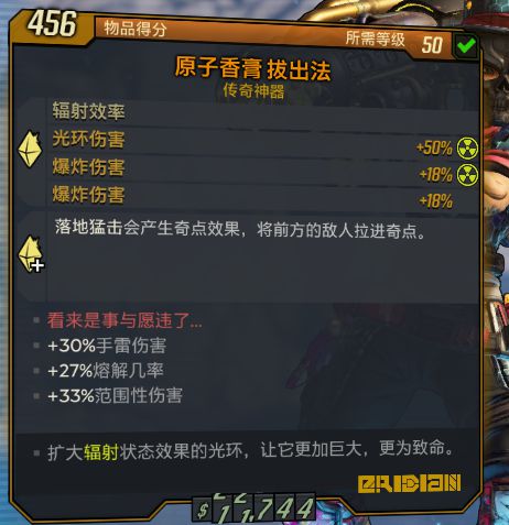也是偶然刷到的,属性一般,但是有31%的重型武器伤害,配合上无限回弹的火箭筒,可以一直保持100%增伤的buff。