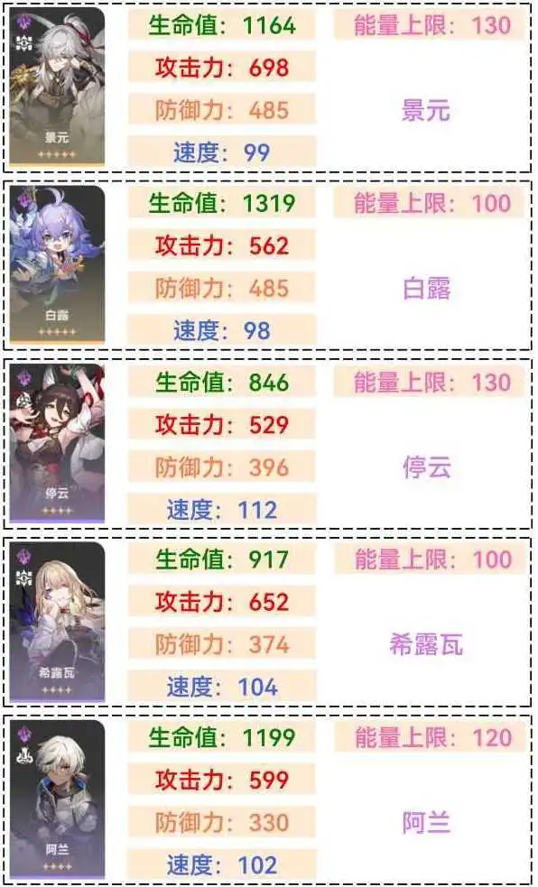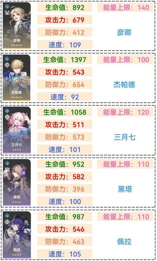 《崩坏星穹铁道》角色的基础属性往往是查看一个角色强度最直观的方法,下面请看玩家“溯溯Susu”带来的《崩坏星穹铁道》全角色满级基础属性一览,希望能帮助到大家。