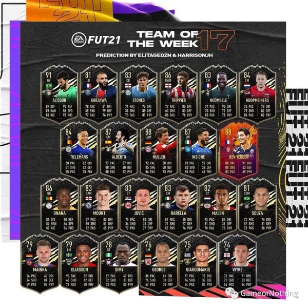 《FIFA21》每周都会有周最佳阵容来让玩家们选择,那么第十七周有哪些表现优秀的球员呢?请看玩家“GameorNothing”分享的《FIFA21》第十七周最佳阵容预测,希望能为各位玩家带来一些帮助。