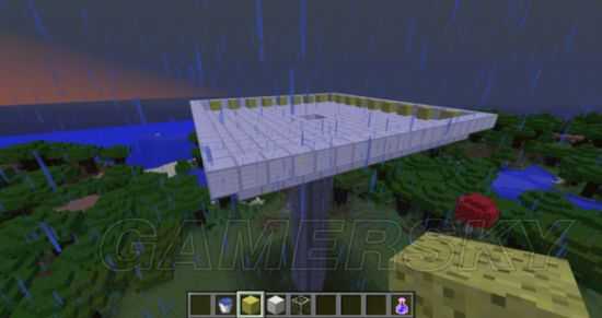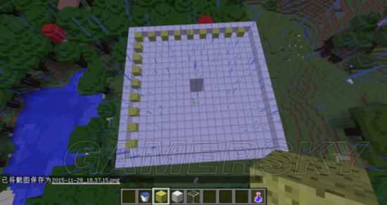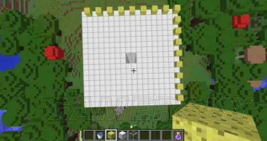注:楼主在用铁块是因为铁块之间的线条比较分明,各位如果在生存模式想盖的话用什么都可以(透明方块或者不透明方块)的。