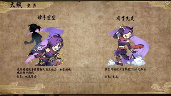 在天赋的设计上,《侠客风云传前传》也是尽量想表现出角色的个性,上述的“妙手空空”天赋就是史燕的专长。