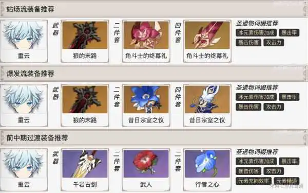 此处介绍几种基于重云冰元素附魔的衍生打法: