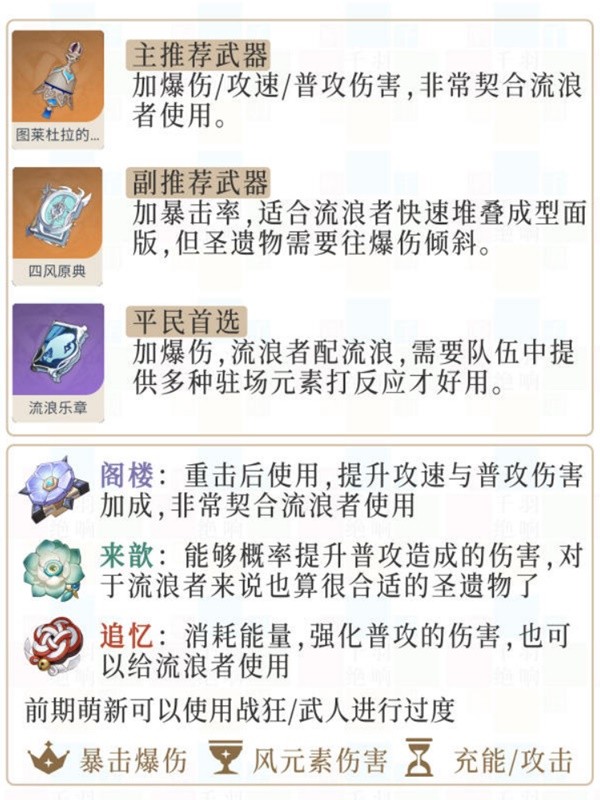 正文 《原神》流浪者装备及队伍搭配参考 游戏先锋 /2025-06-28 19:51:28 /21 浏览量 0628 《原神》流浪者是非常强力的五星角色,很多玩家想要知道他的武器和圣遗物该如何选择,下面请看“千羽绝响”带来的《原神》流浪者装备及队伍搭配参考,希望能够帮助大家。 万水千山迷远近,想乡关何处。 -- 展开阅读全文 --