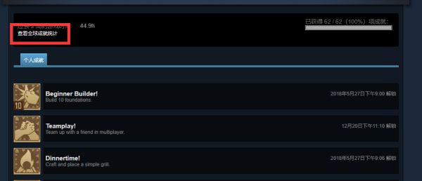 2.里边有一个查看全球成就统计,点进去会展示所有的成就以及这个成就在全球范围玩家中获得的比率。