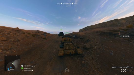 然后让队友进入B点,咱们就可以回去补给,顺便卡一波弹药带够40/40的散弹,然后分秒必争咱们马上去到A点的高地,在靠近地图边缘的一侧,你可以直接开上去,对面的反斜坡有一块石头,可以卡住你如下图,在那个点位对点里面的人开捞,右边铁箱子区域会有大量的敌人,还有靠近弹药箱附近。