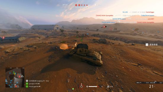 这个距离大部分也是一炮捞掉,一定要先打掉带筒子的还有能对你造成威胁的兵种,时刻注意自己的血量,把握住极限快修,快修最多可以修理45血,不是关键时刻就不要用,本人在点外,对点内的人连杀几分可以达到2000,切记有先解决突击>支援>医疗>斟茶!!!