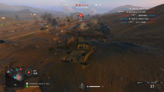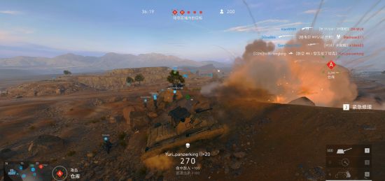 首先我们拿到我们的AA车,刚开始你可以ADAD这样按你就会发现,在别人都动不了的情况下你可以缓慢向前蠕动~参考CSGO连跳加速这个技巧最好用在鹿特丹突破,德军第一个点,用坦克直接可以蠕动到让一部人进入你的射程,然后我们第一时间开到,B点的高地,切换散弹把可视范围里的敌人全部打掉,让队友进点,(左上角那个敌人才算中距离)其他三个都是一炮秒杀的,这局对面比较机智有16个SAGA的,他们是直接部署在点里的。