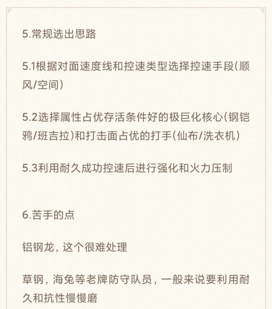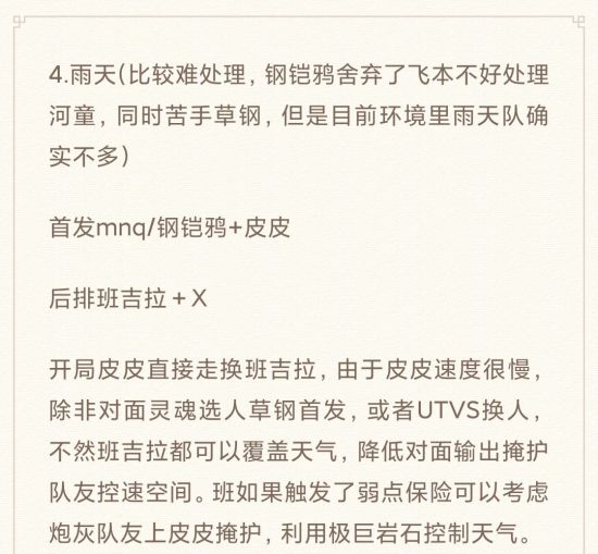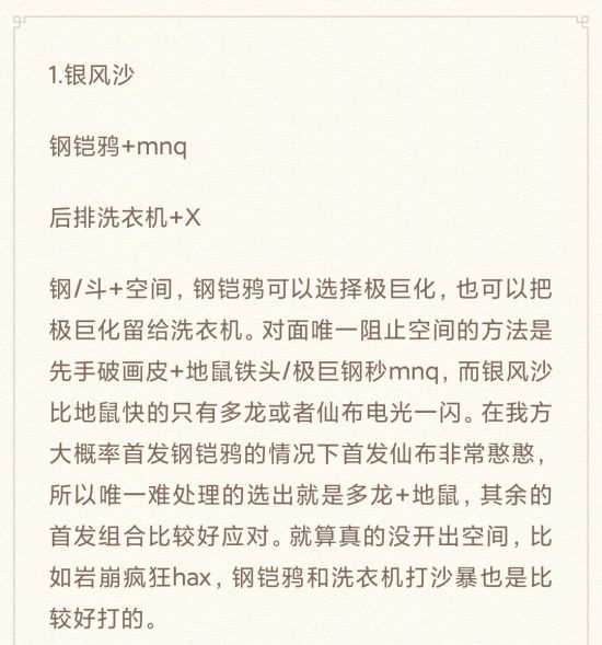 3、队伍环境中的主流队伍,尤其是已经有租借方式的队伍,要想好对策或者说剧本。因为实机排位的对手水平和操作习惯各不相同,真打起来并不一定按照剧本走,但是对于常见的套路必须有应对。