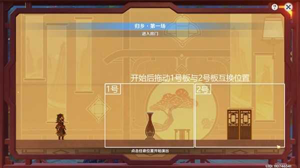 这一场中人物所在板块是无法移动的。在演出开始后,拖动1号板,与2号板互换位置。