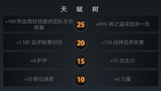 玛尔斯召唤出环绕着余烬军团亡灵战士的竞技场,战士们将阻挡敌人的攻击和动向。敌方英雄靠近竞技场内侧边缘将被战矛攻击,受到伤害并被击退。
