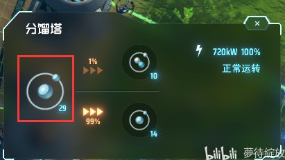 多塔成环效率的估算是把每个分馏塔内氢的数量相加后乘以1%,即下图中分馏塔红框标注的数量。这个数应该是会不停的波动的,不过是估算,所以自行凭感觉来取值也可以算出大致产量。 取的值大致取决于这个数波动的频率,大于80%的时间稳定显示同个数字需要对该数+1计算,小于80%时间显示同一数字且大于50%显示大值数字则取大值,小于50%显示大值数字则取小值。这个百分比仅供参考,实际以你自己感觉为准。