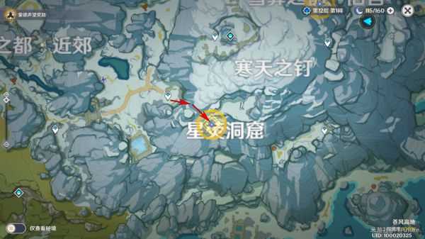 任务位置及路线如图所示,传送到图示传送锚点后,顺着地图指引向下飞,可以直接飞过去(在洞穴里)。