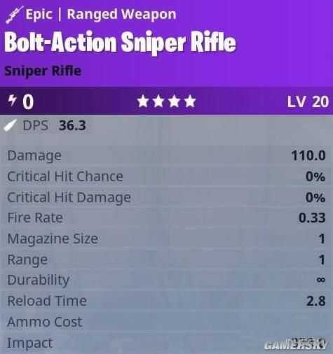 在《堡垒之夜》空降行动中,狙击步枪是一种比较稀有的武器,接下来小编就为大家介绍史诗栓动狙击步枪,一起来看看吧。