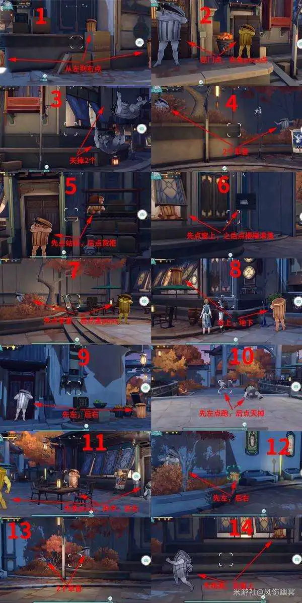 这一关的视角是往左移动的,需要注意我写的字顺序,前面的先点,否则视角超过一点就点不了了。