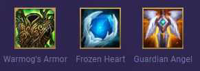 由于潘森的基础数值很强,削弱后依然是5费英雄的标准强度,所以我们在装备搭配时,会希望他变成更硬,让他可以尽快放出大招。因此,狂徒铠甲、冰霜之心是核心装备,一个加强回血能力,一个提高护甲并且加快潘森放技能的速度。
