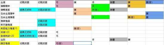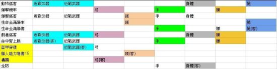 方法是先记录我想要的技能在哪个部位可用,再上色决定哪个部位要哪些技能。