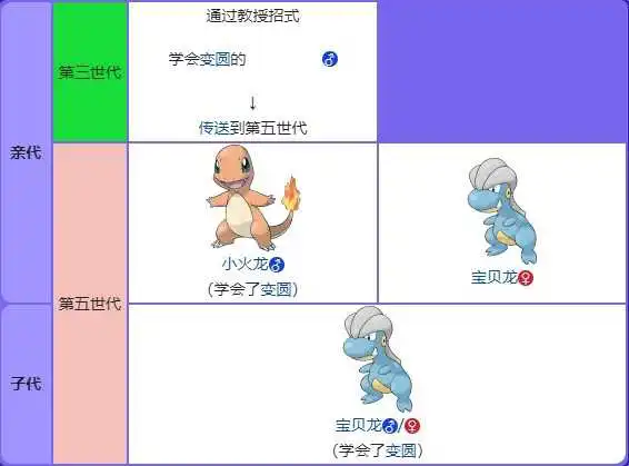 例如,变圆在第三世代作为教授招式可以被含有龙群的小火龙学会。
