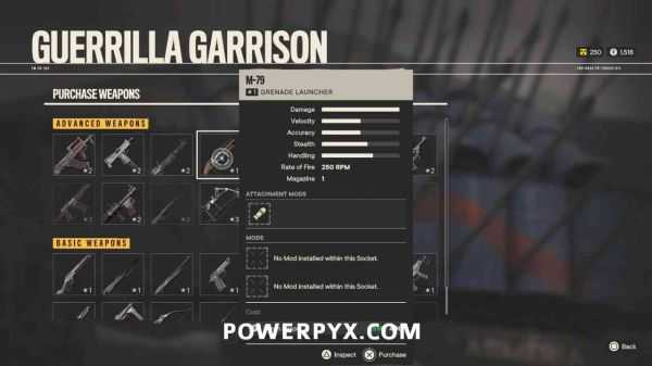 升级之后即可从游击队驻地的军火商人处购买榴弹发射器【M-79】,费用为400比索,完成打劫很容易获得比索,从营地任务板上可以接取。