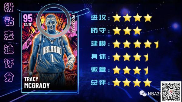 属性点评:这张粉钻麦迪明显的攻强守弱,速度和控球也只能说是刚刚合格,总体属性低于期待值。