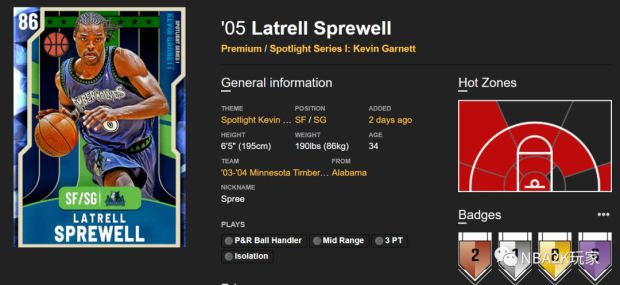 这张卡定位进攻端定位在能力均衡。此外关于位置选择还想补充一点,虽然今年小个子可以玩了,但优势在于突破能力,AI这类球员在玩玩花进入内线之后得分可以很飘逸,较难被帽,在打不开局面的时候可以换上稍微打打。不过防守端劣势依旧存在,被背打还是难受,SF这个位置需要一定的硬度和身高,而内线球员身高模型的重要性和以往相比差别并没有多大改善,大个子站在篮下就是一种威慑,这是篮球这项运动本身就存在的筛选。