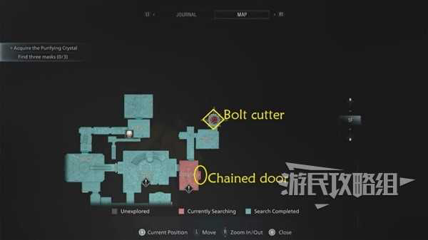 清理掉敌人后,进入厨房后面的小房间,断线钳就在角落里。再回到餐厅,剪断锁链就能去庭院了。